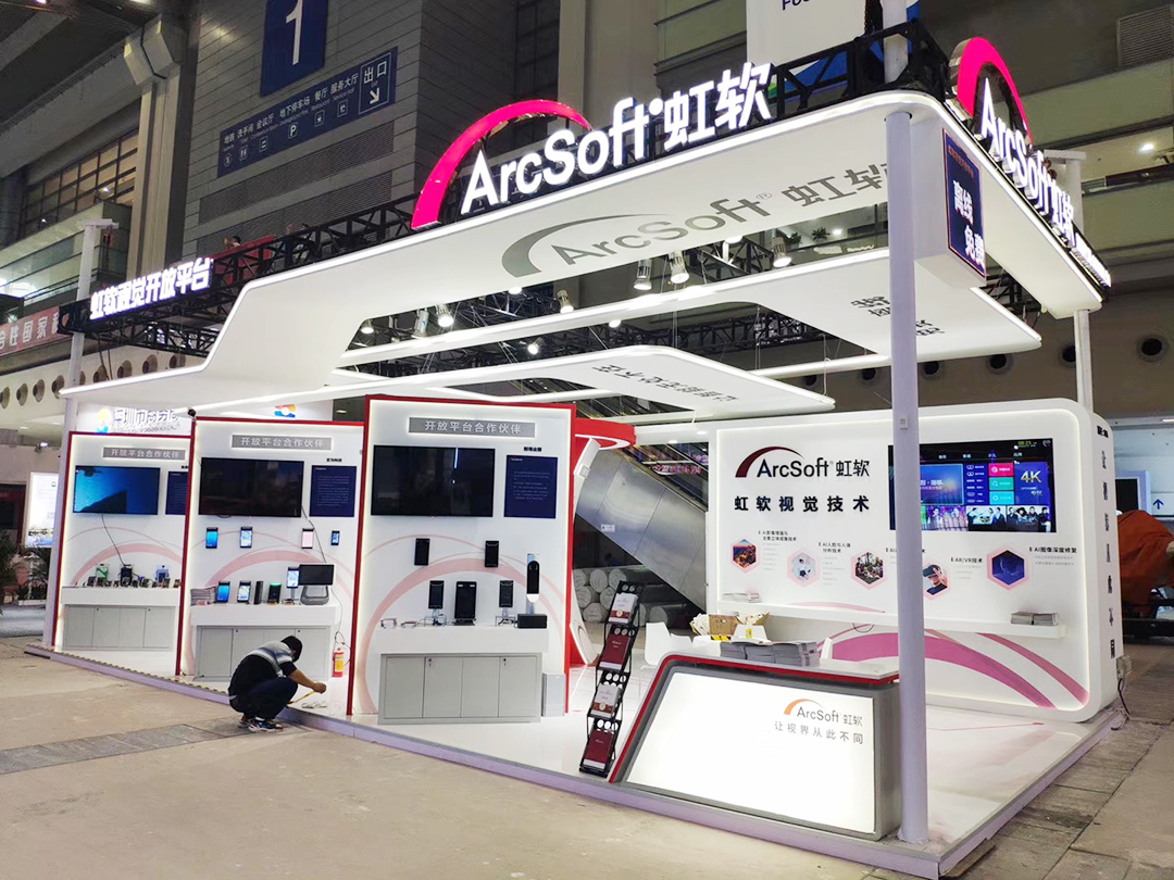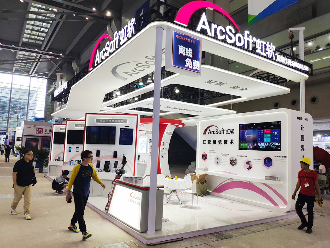 本屆展會上虹軟科技的視覺開放平臺在一號館大放異彩,并在浙江展團亮相了最新智能座艙視覺解決方案,讓現(xiàn)場觀眾近距離感受視覺AI技術在只能汽車領域的創(chuàng)新力??栁纳鳛檎古_供應商,為客戶設計展臺時結合客戶形象和產(chǎn)品特色,并憑借多年的展臺搭建經(jīng)驗,將展臺效果圖,完美的呈現(xiàn)在展會上,展示客戶的品牌形象。